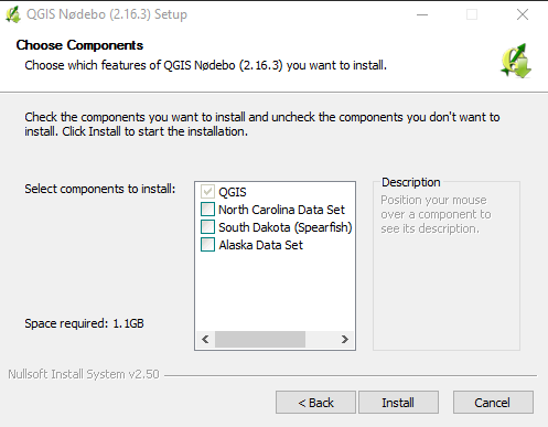 4. Sekarang silahkan pilih komponen yang ingin di install. kita pilih saja defaultnya QGIS. lalu klik Install.